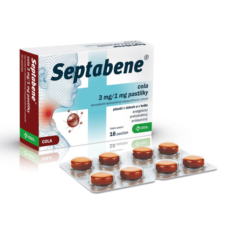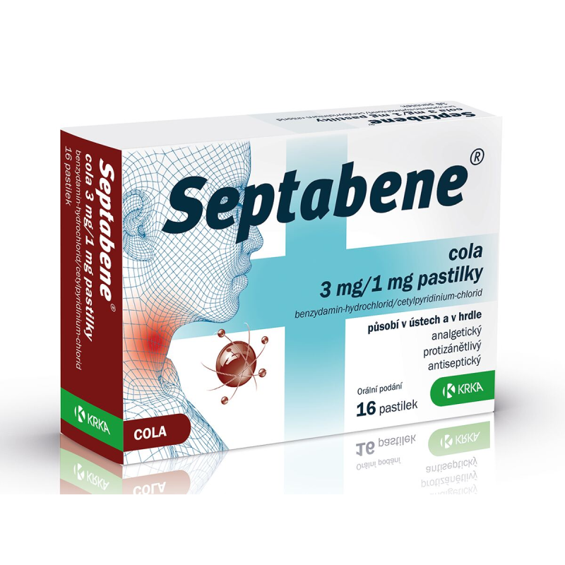 Léčivými látkami jsou benzydamini hydrochloridum a cetylpyridinii chloridum. Jedna pastilka obsahuje benzydamini hydrochloridum 3 mg a cetylpyridinii chloridum 1 mg. Dalšími složkami jsou kyselina citronová (E 330), sukralosa (E 955), kolové aroma (obsahuje benzylalkohol (E 1519) a butylhydroxyanisol (E 320)), karamelové barvivo (E 150a) a isomalt (E 953).