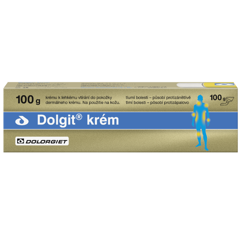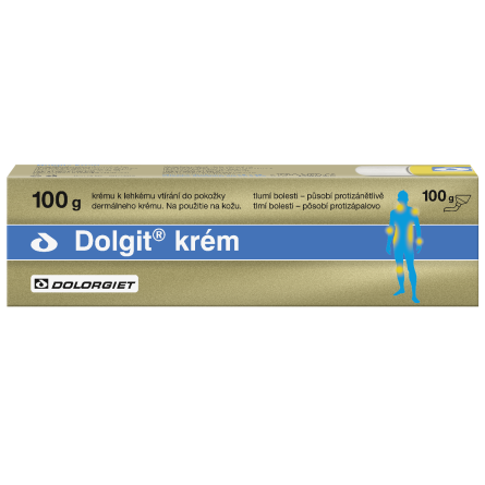 Dolgit krém k aplikaci na kůži pro místní léčbu bolestí pohybového ústrojí. Přípravek je rychle absorbován kůží a působí v postižené tkáni. Lze jej užívat jako doplňkovou léčbu při užití tablet s obsahem ibuprofen. Tišící účinek nastupuje již za půl hodiny po aplikaci krému. Léčivou látkou je ibuprofenum, pomáhá pří revmatických i nerevmatických bolestech jako je zhmoždění, výron, vymknutí, vykloubení, namožení svalu při sportu nebo při nehodách. Na doporučení lékaře se přípravek používá k léčbě akutních či chronických zánětlivých a bolestivých chorobných stavů pohybového ústrojí, zánětlivých revmatických onemocnění kloubů a zánětů měkkých tkání přiléhajících ke kloubům, onemocnění páteře, otokům, při zánětu šlach, šlachových pochev, vazů a kloubních pouzder, při ztuhlosti ramene, bolestech svalů, ústřelu a při bolestech spojených s degenerativním onemocněním kloubů (artróza).