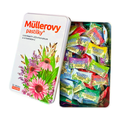 Oblíbené originální Müllerovy pastilky v plechové dóze. S...