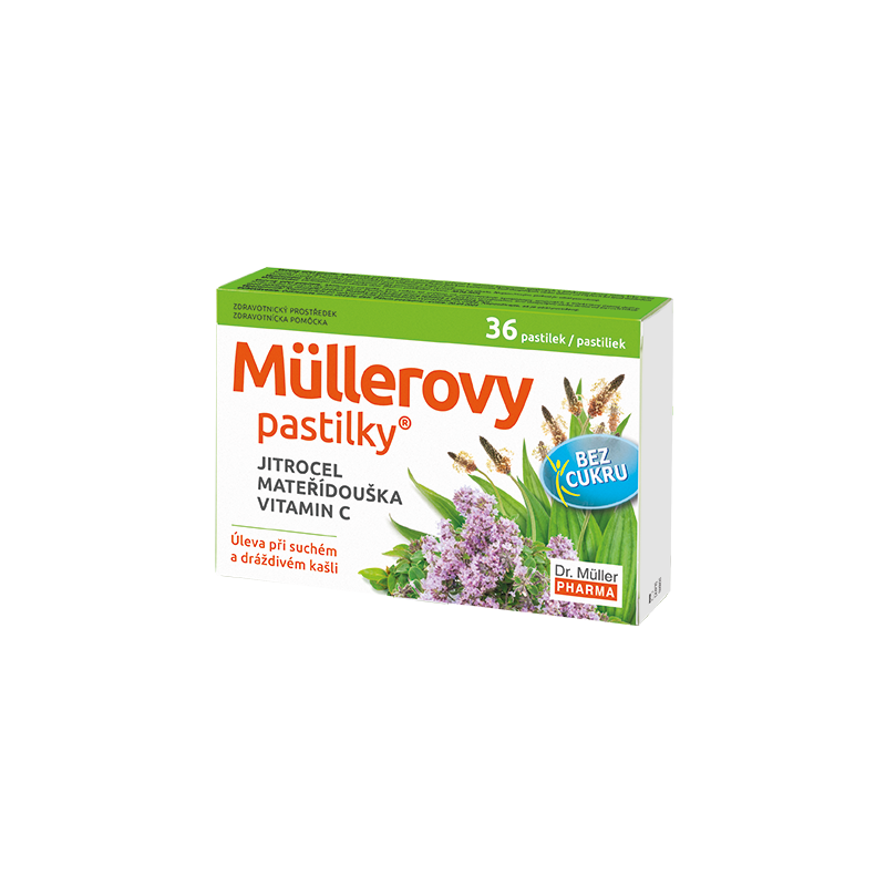 Pastilky jsou určené k mírnění symptomů, doprovázejících nachlazení, infekce dutiny ústní, krku nebo horních cest dýchacích. Müllerovy pastilky lze kombinovat s Müllerovými sirupy. Jsou vhodné i pro těhotné a kojící ženy.