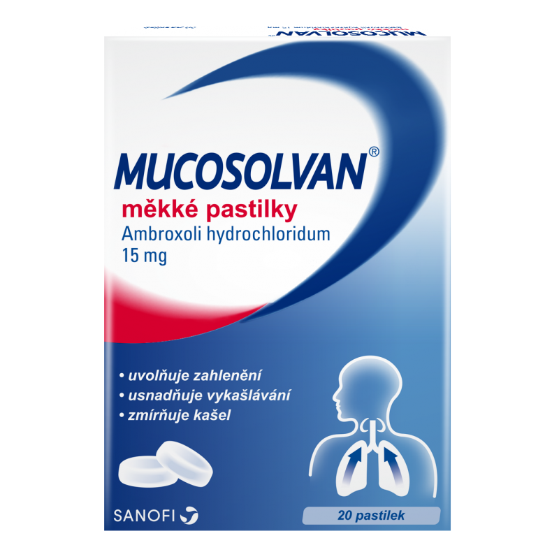 Přípravek MUCOSOLVAN® pastilky je určen pro dospělé, dospívající a děti od 6 let. MUCOSOLVAN® (měkké pastilky) je volně prodejný lék k vnitřnímu užití. Obsahuje ambroxoli hydrochloridum. Čtěte pozorně příbalovou informaci a poraďte se s lékařem nebo lékárníkem.
