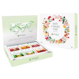 Megafyt Svět v šálku čaje kolekce čajů obsahuje 30 nálevových sáčků (5 sáčků od každé příchutě čaje).