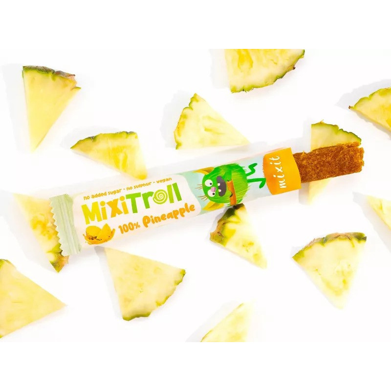 MixiTroll - Ananas je lahodná a zdravá rolka vyrobená ze 100 % z čerstvého ananasu bez přidaného cukru, barviv a konzervantů. Sladká chuť exotiky, která se vejde do kapsy – ideální jako zdravá svačina na cesty, do práce nebo pro děti do školy. Každá MixiTroll byla vyrobena metodou šetrného sušení při nízké teplotě, takže si zachovala všechny zdraví prospěšné vitamíny a minerály.