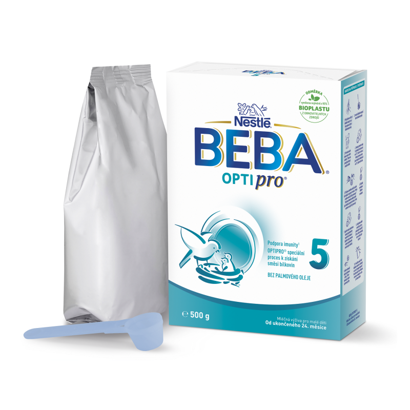 BEBA OPTIPRO® je oblíbená dětská mléčná výživa všech spokojených miminek. Receptura je obohacena o nezbytné vitamíny a minerální látky jako železo, vápník a vitamín D pro správné základy do života a navíc obsahuje také probiotika B.lactis a optimalizovanou bílkovinu. Lahodná chuť mléčné výživy BEBA OPTIPRO® potěší i mlsné jazýčky. Balení v krabici je šetrné k přírodě, díky 100% recyklovatelnému obalu a recyklovatelné odměrce uvnitř balení, která je vyrobena z bioplastu z obnovitelných zdrojů. OPTIPRO® je speciální proces k získání směsi bílkovin s cílem přiblížit se mateřskému mléku. Podpora imunity – vitamíny A, C, D se podílejí na normálním fungování imunitního systému. Bez palmového oleje.