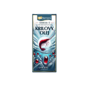 Krilový olej (korýši) 1200 mg. Obal: hovězí želatina, látka zvlhčující: glycerol, sorbitol, látka zvýrazňující chuť a vůni: ethylvanilin.