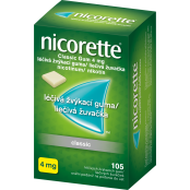 Nicorete Clasicc Gum 4 mg - pro silnější kuřáky (více než 20 cigaret denně) , žvýkačka nahrazuje část nikotinu, který se do těla dostává inhalování cigaret a tím zmírnit chuť na cigaretu. Zároveň zmírňuje abstinenční příznaky při odvykání kouření. Jedná se o vhodný přípravek při odvykání kouření, žvýkačku můžete užít kdykoliv dostanete chuť na cigaretu. Přínáší ulevu a svěží chuť máty. Bez lepku, laktózy a bez cukru.