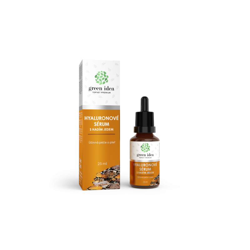 Intenzivní pleťové sérum je vyvinuté na základě nejnovějších poznatků z oblasti fytofarmacie, dermatologie a kosmetické péče a nabízí účinnou a efektivní pomoc v péči o zralou pokožku obličeje a dekoltu s vysokým liftingovým účinkem. Kombinuje dvě molekuly kyseliny hyaluronové, syntetický hadí jed a další aktivní látky. Malé molekuly HA pronikají hluboko do podkoží, kde oddalují tvorbu vrásek, naopak velké molekuly působí na povrchu pokožky a napomáhají jejímu vyhlazení. Hadí jed v malých dávkách zabraňuje ochabování pleti, uvolňuje obličejové svaly, a tak efektivně vyhlazuje vrásky jako šetrná alternativa botox injekcí. Výtažky ze Smilu italského přispívají k regeneraci pokožky a syntéze kolagenu. Allantoin pokožku účinně zklidňuje a výtažek z Aloe Vera dodává potřebnou hydrataci. Výsledkem je regenerovaná, pružná a svěží pleť.