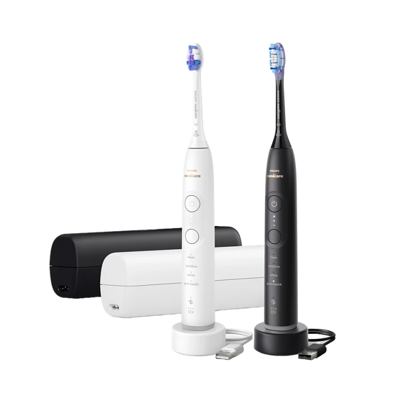 Set sonických zubních kartáčků s inteligentními senzory tlaku, pohybu a polohy pro šetrnou péči o zuby, dásně a jazyk. Odstraňuje až 10krát více plaku než manuální zubní kartáček a zajišťuje hloubkové čištění. Cestovní pouzdra.