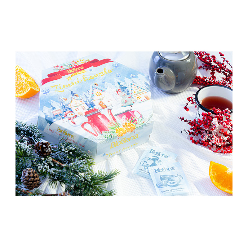 Objevte kouzlo zimních večerů s čajovou kazetou BIOGENA Zimní kouzlo. Tato elegantní dárková sada ukrývá šest pečlivě vybraných čajových směsí, které potěší svou rozmanitostí chutí i vůní – Švestka s pomerančem, Zázvor s mandarinkou, Citrusové plody s kořením, Zimní punč, Jablko s rakytníkem a Hřejivá hruška. Každý šálek navodí příjemnou atmosféru, zahřeje v chladných dnech a přinese kousek sváteční pohody do každodenních okamžiků. Ideální dárek pro milovníky čaje i krásná volba pro chvíle, kdy si chcete dopřát něco výjimečného.