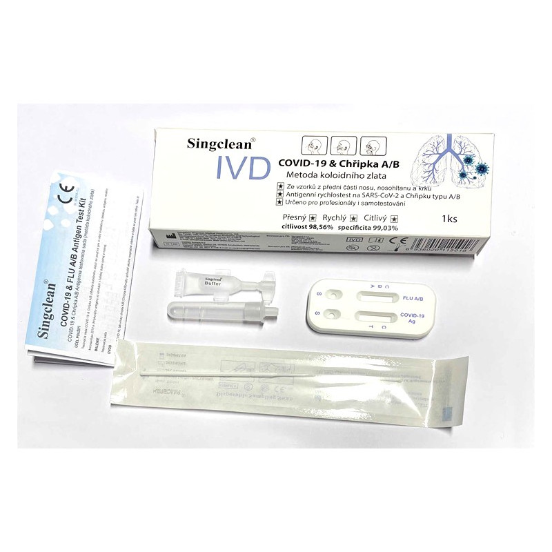 SINGCLEAN rychlotest na antigen SARS-CoV-2 a Chřipku typu A/B se využívá pro in vitro kvalitativní detekci antigenu nového koronaviru 2019 a chřipkového antigenu ve vzorcích v lidské dutině ústní a nosní. Tyto dva testy využívají imunochromatografii koloidního zlata k detekci antigenů COVID-19 a chřipky A/B.