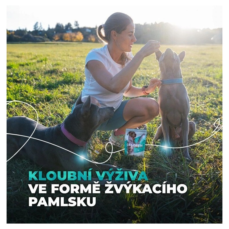 Žvýkací želé Geloren dog obsahují aktivní látky potřebné pro správné fungování kloubů, vazů a šlach.