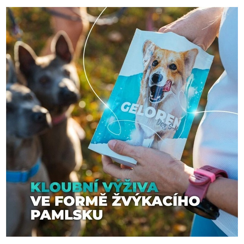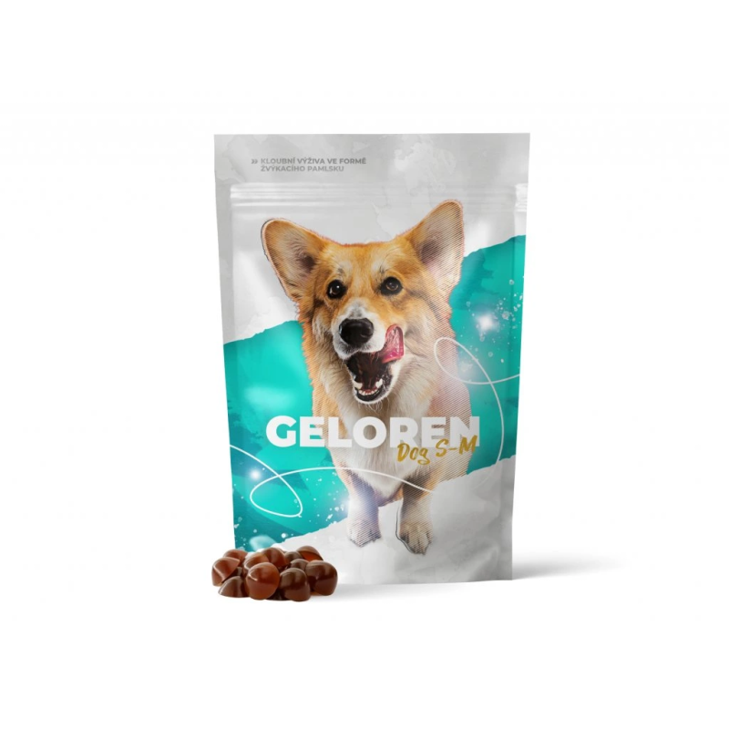 Žvýkací želé Geloren dog obsahují aktivní látky potřebné pro správné fungování kloubů, vazů a šlach.