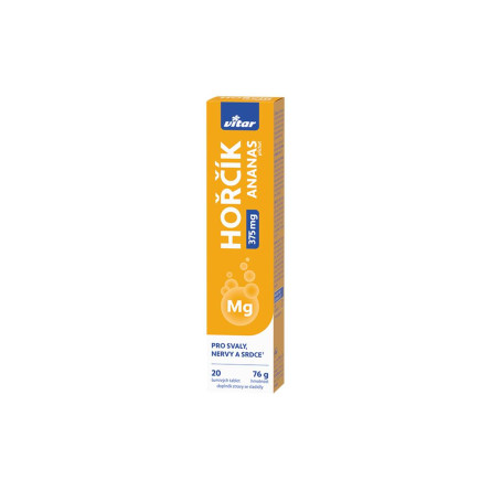 Vitar Hořčík 375 mg obsahuje hořčík, který přispívá ke snížení míry únavy a vyčerpání, normální činnosti svalů a nervové soustavy.