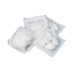 Stáčené gázové tampony z bělených bavlněných vláken, sterilní.
