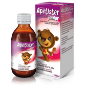 APETISTER Junior je doplněk stravy v tekuté formě. Má příchuť maliny a černého rybízu a je určen pro děti od 3 let. Přípravek obsahuje extrakt z bedrníku anýzu, máty peprné, kořene čekanky a fenyklu obecného. Dále se ve složení nalézá vitamin B2, vitamin B6 a niacin.